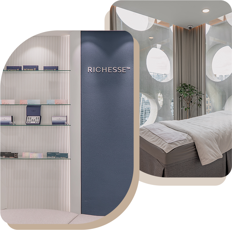 피부결은 표면의 매끄러움, 모공, 여드름 흔적 등 질감 전반을 의미합니다. 재생을 유도하는 레이저 케어와 리체스 스킨부스터 시너지로 결을 정돈해 고운 피부결을 완성합니다.